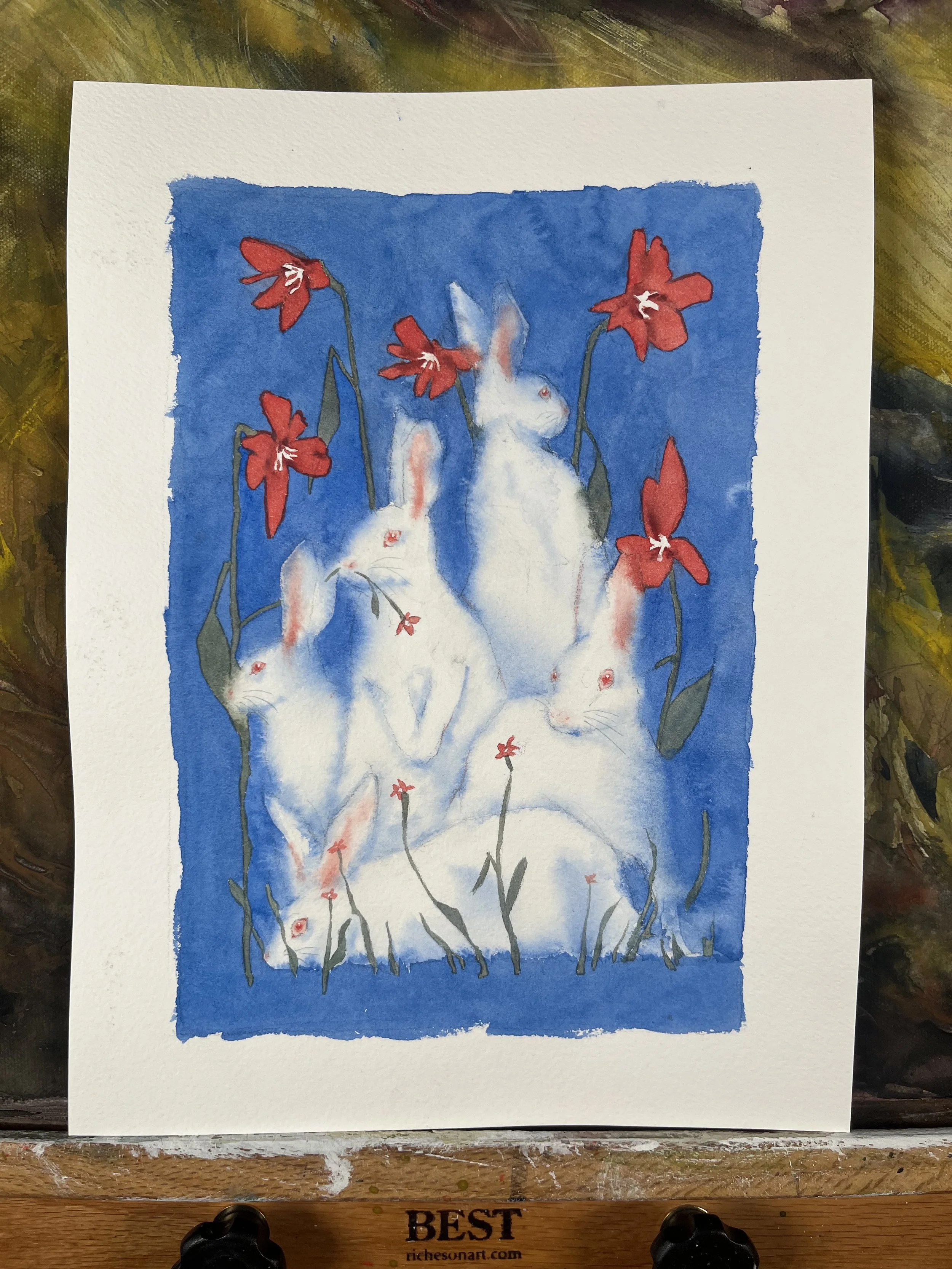 Rabbits, 2025, Watercolor on cold-press paper.